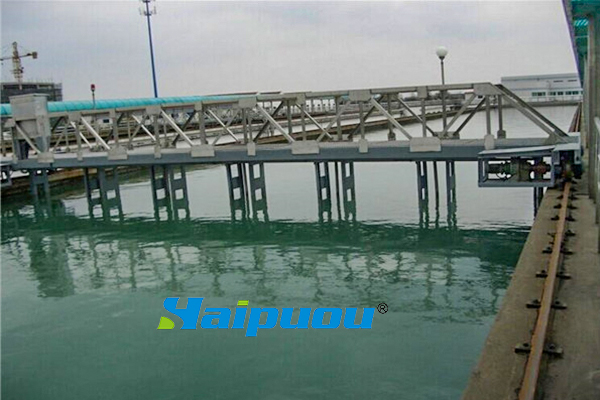 6、吸泥管和排泥管管道安裝,從吸泥泵的入口處開始自上往下安裝管道及吸泥嘴,吸泥嘴至池底距離為10~20mm。數(shù)臺(tái)吸泥泵匯總至一條出泥管道排入平流池外側(cè)污泥溝中。